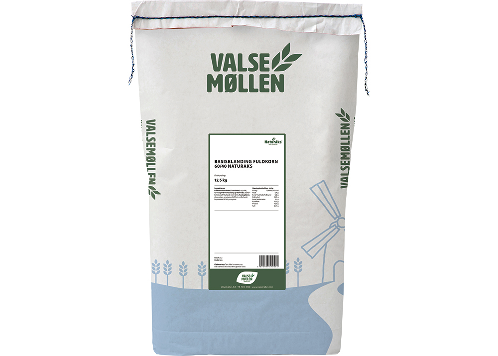 Basisblanding Fuldkorn 60/40 NaturAks er en forblanding der kan anvendes til brød, i mange forskellige retninger fx. fuldkorn kernebrød, fuldkorn franskbrød eller fuldkorn ciabattabrød. Med Basisblanding Fuldkorn 60/40 kan du nemt lave smagfulde fuldkornsbrød med simple redskaber som samtidig er lækkert og mætter godt.