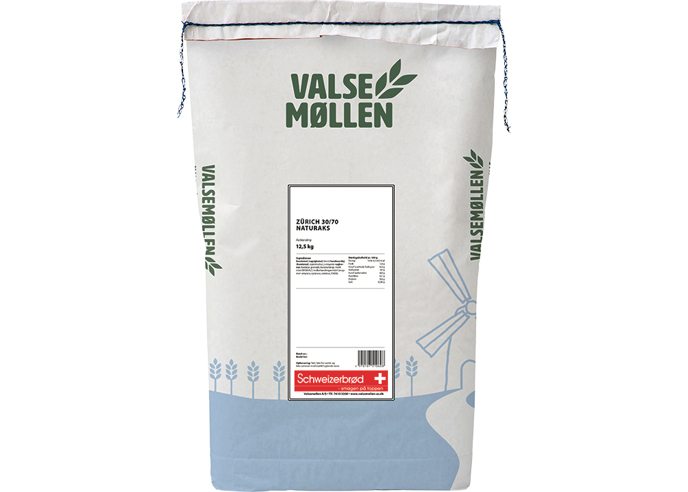 Zürich 30/70 NaturAks er mærket med Valsemøllens NaturAks®. I vores NaturAks® koncept har vi håndplukket landbrugene, og vi følger kornet og melet løbende helt fra jord til bord, for at sikre den høje kvalitet. NaturAks® er samtidig din garanti for, at kornet er dyrket uden brug af stråforkorter og roundup.